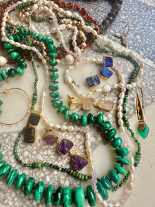 The birth of Cathy Pope Jewellery in 2011 was an organic response to the existing jewellery market. Dissatisfied with options that were either overly expensive or mass-produced, she created a distinctive design - a bold stone on a substantial gold chain - that quickly attracted attention from friends and local retailers and her iconic chunky choker necklace was born.