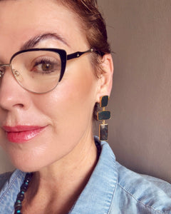 Blue Lace Agate Gold Long Earrings